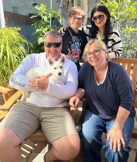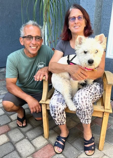 Meet Kim & Daniel, my new Mom & Dad. When they arrived to see me, I rushed out the door and showered them with kisses. I climbed into my new Dad’s lap and he hugged me tight. We all knew that this was a perfect match for us. My life was hard on the street, but if you just believe, your dreams will come true. XO Bluey