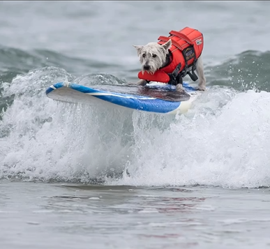 Our Surf Dog Petey will be competing in The Purina Incredible Dog Challenge and The Del Mar Dog Surf-A-Thon. He hopes to raise $$ for WROC Seniors & Forever Fosters. Photo by Gilda Rottman