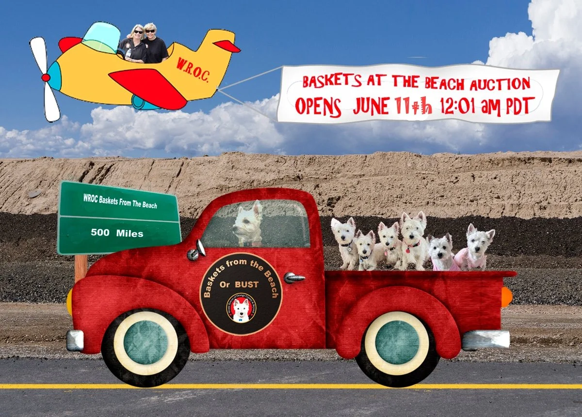 Another great auction is in the books. We really appreciate all the shoppers in WROC’s Wonderland FB Auction. We raised $14,005 for our Westies & are very grateful to all of you.